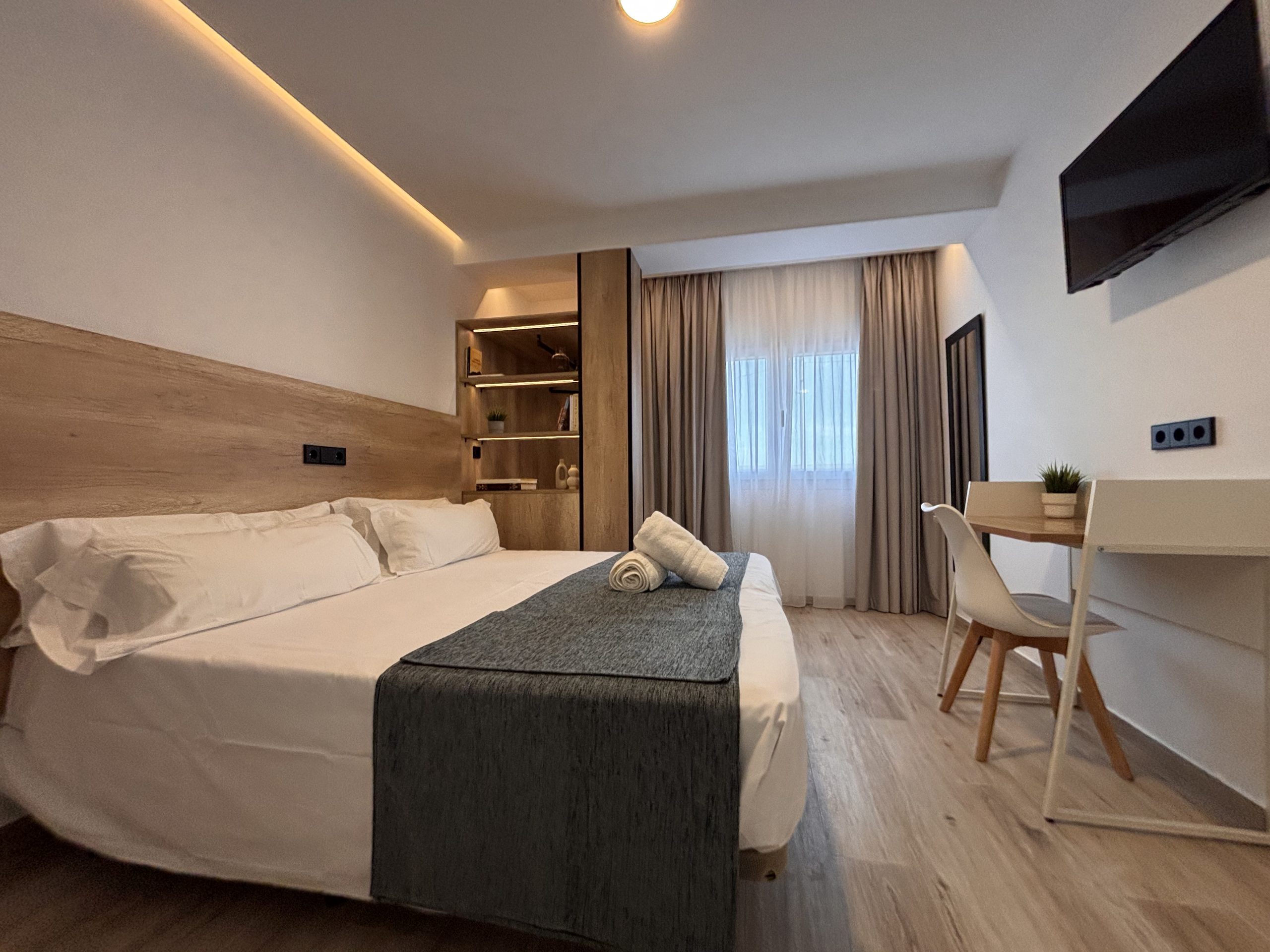 Habitaciones confortables, luminosas y equipadas con baño privado, Wi-Fi gratuito, aire acondicionado, calefacción y televisión. Elige la estancia perfecta para disfrutar del descanso y la tranquilidad que ofrece Puerto Lumbreras.